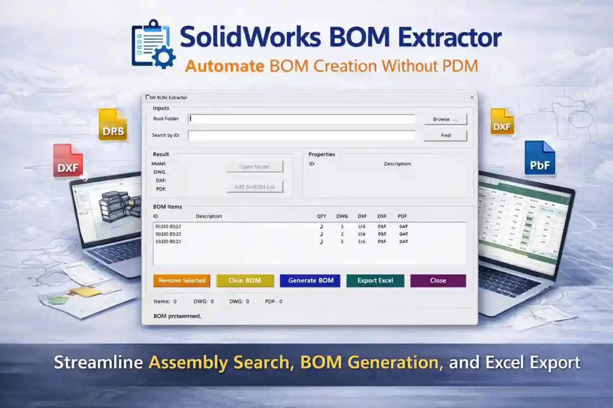 The SolidWorks BOM Extractor Tool is a lightweight CAD automation utility designed to help engineers quickly